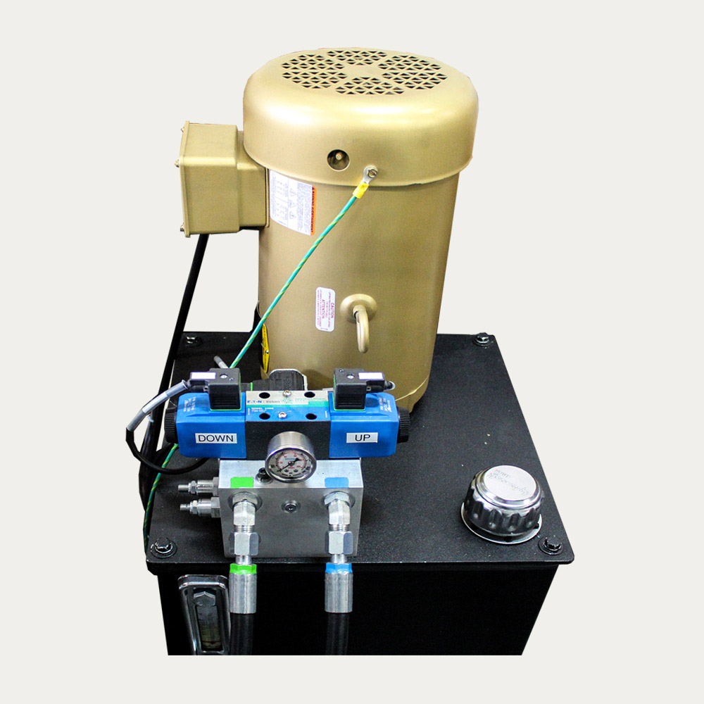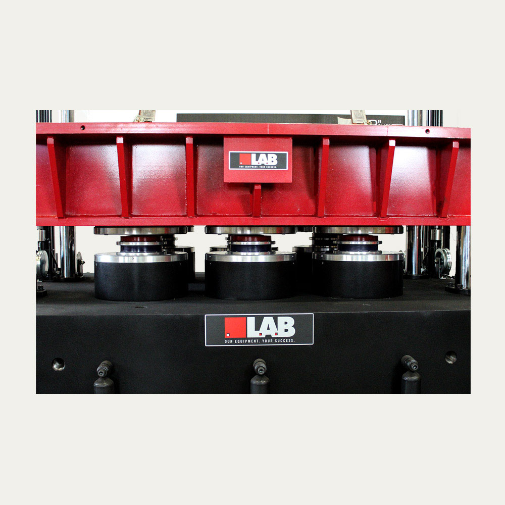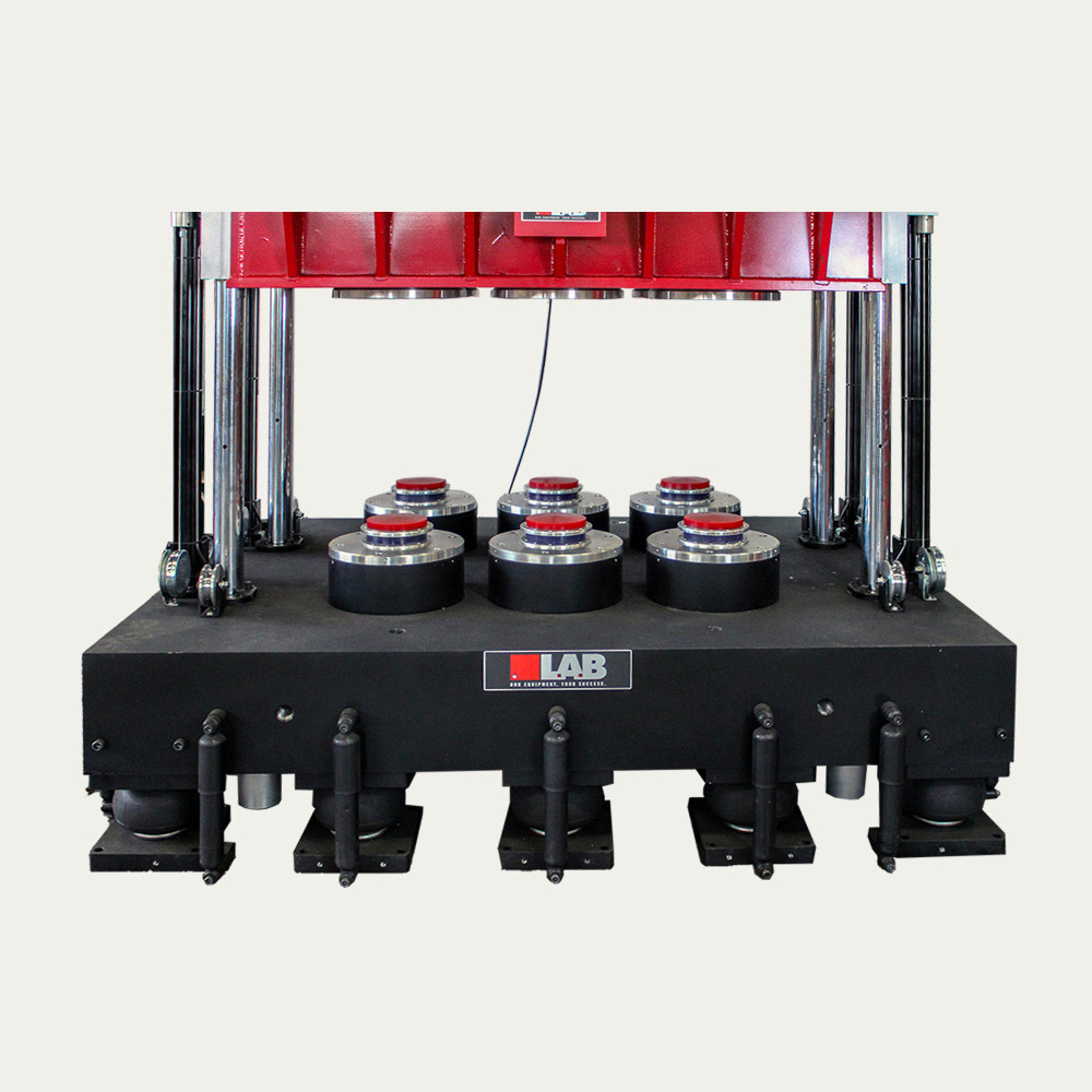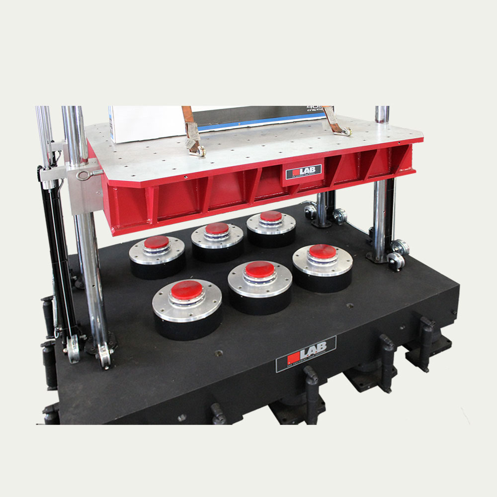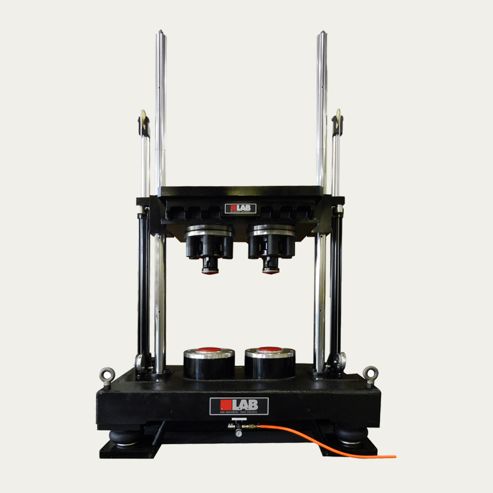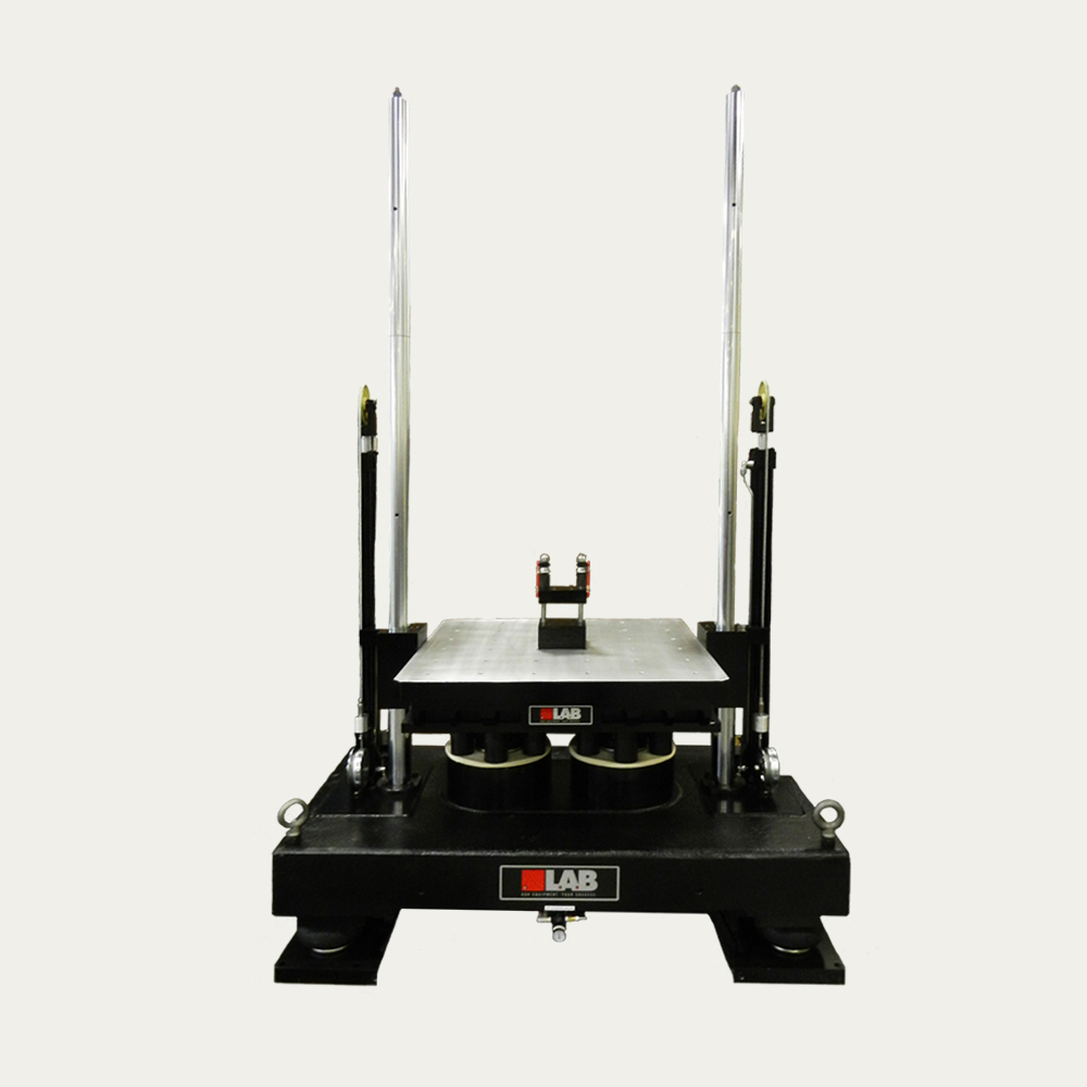 - A multiple post guidance system with balanced hydraulic lift cylinders provides automatic, chatter free positioning and alignment of the shock table.
