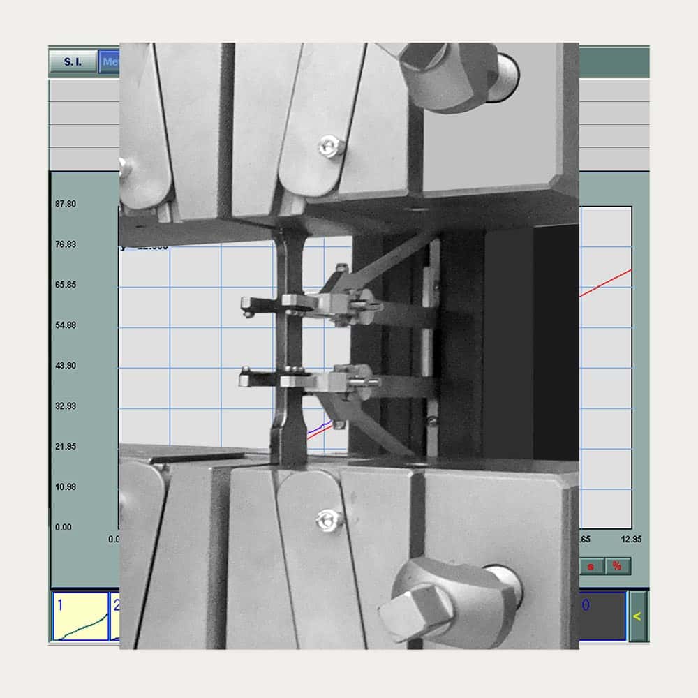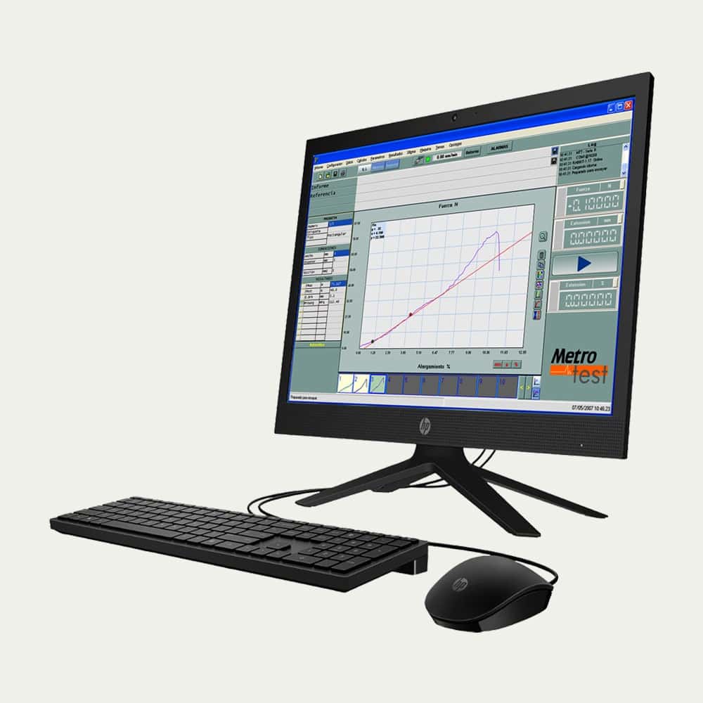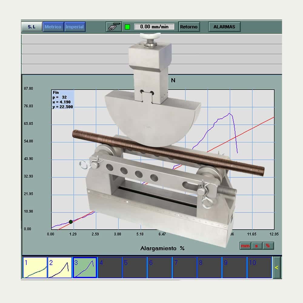 Double column electromechanical testing equipment designed to perform tensile, compression, bending, shearing, peeling and similar tests on resistant materials up to 100 kN capacity.