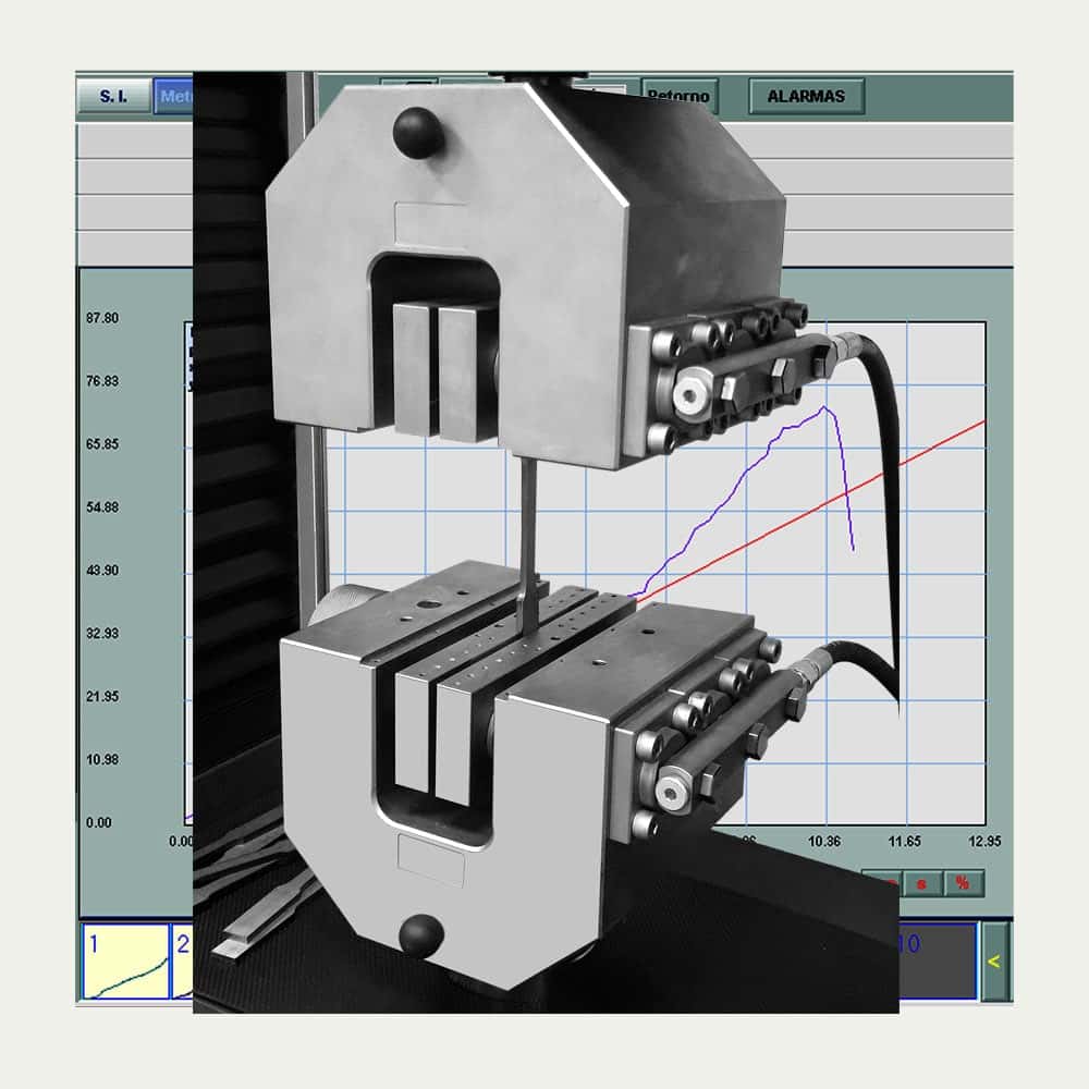 Double column electromechanical testing equipment designed to perform tensile, compression, bending, shearing, peeling and similar tests on resistant materials up to 200 kN capacity.