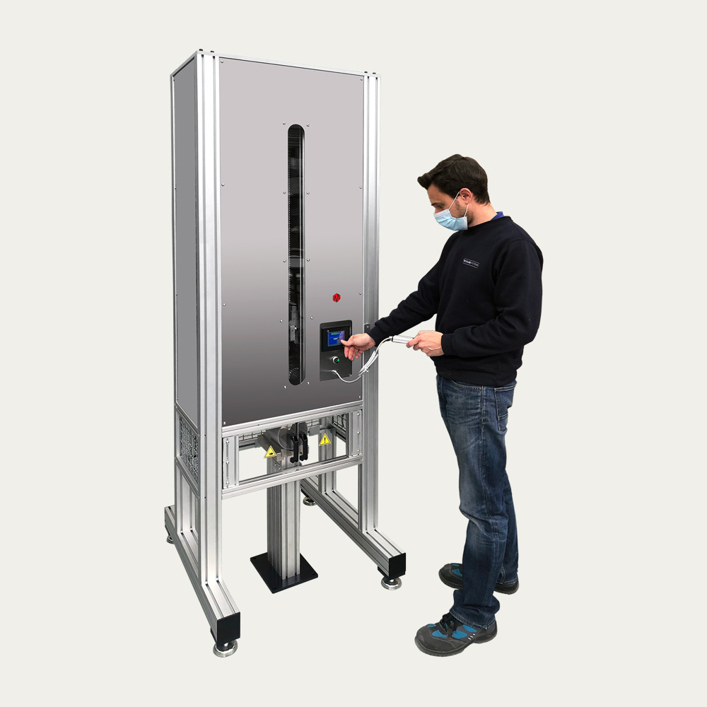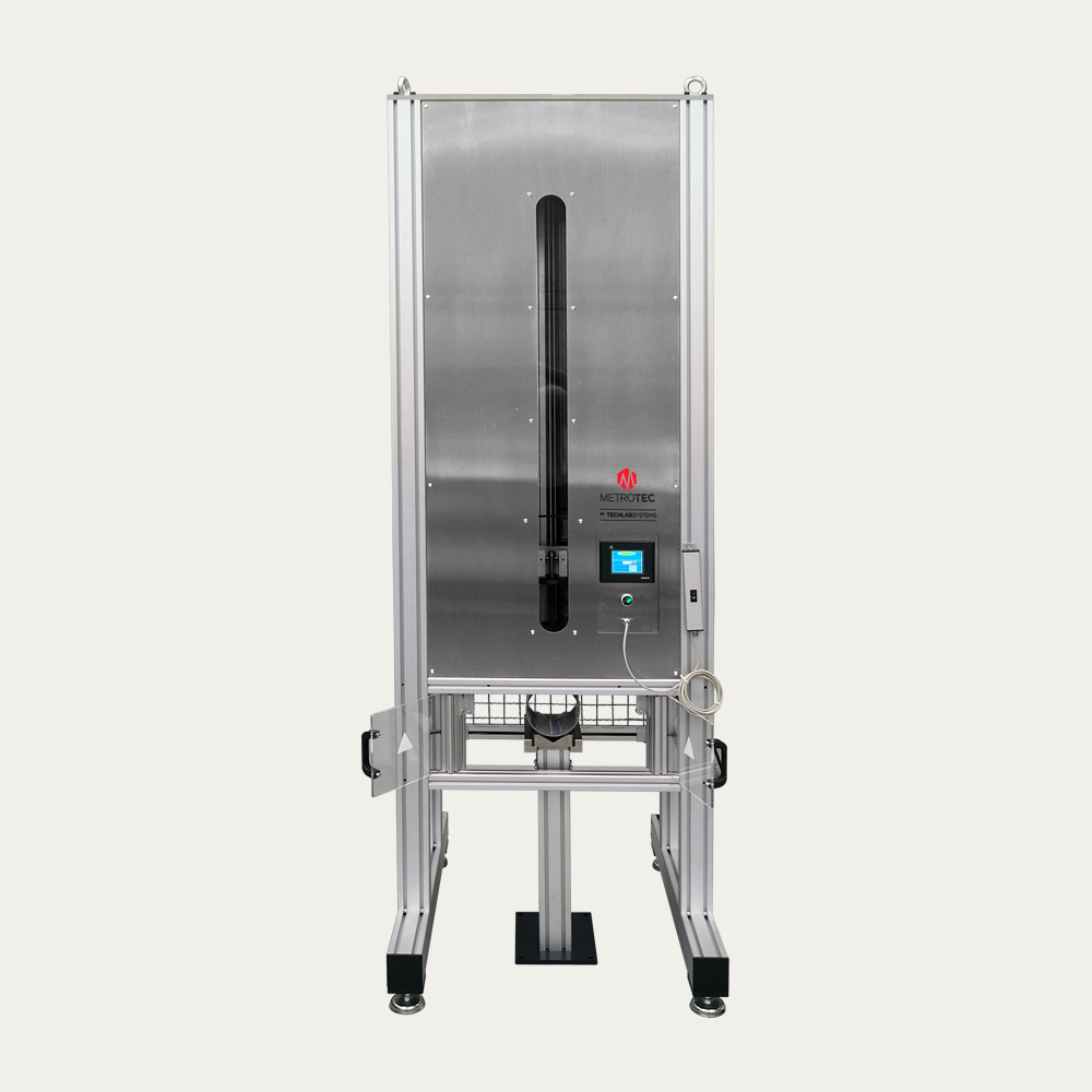 Equipment designed to determine the resistance to impact by free fall of an impact hammer from different heights (until 1m) in samples of plastic pipes and systems for conducting electrical and fiber optic cables.
