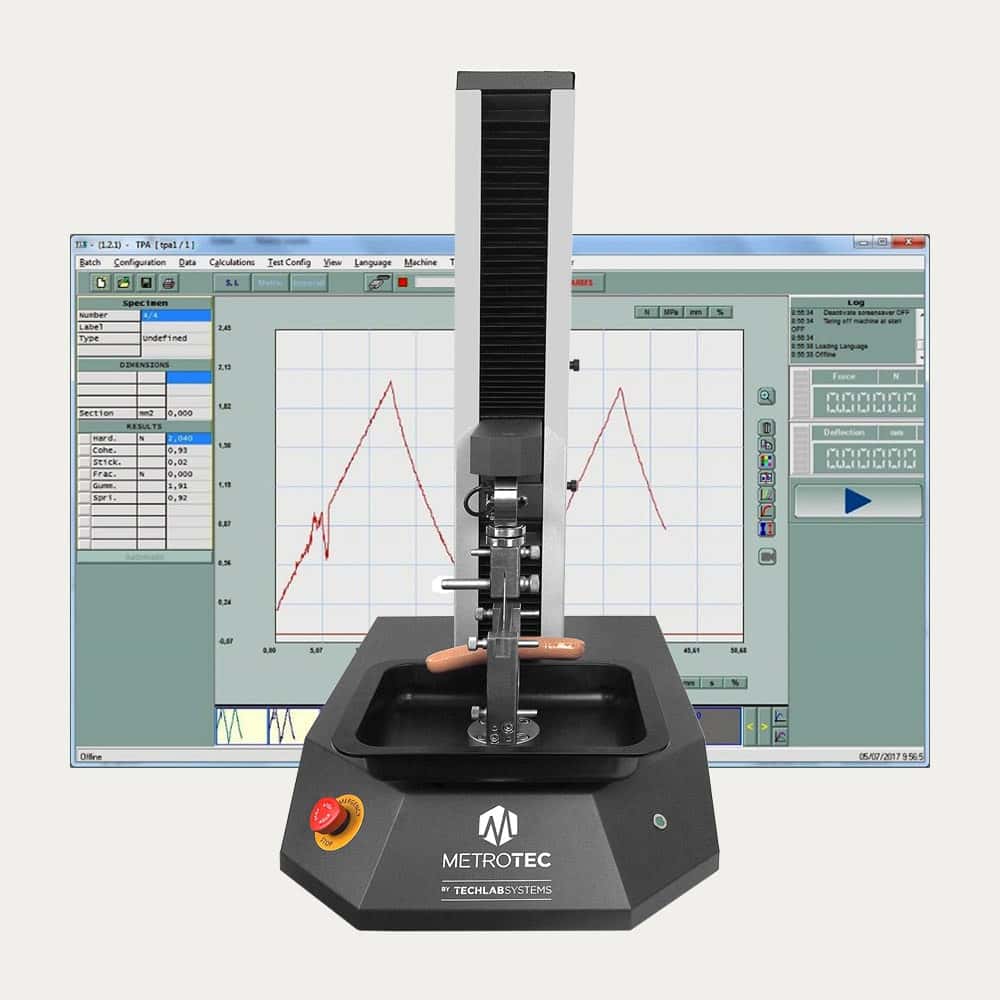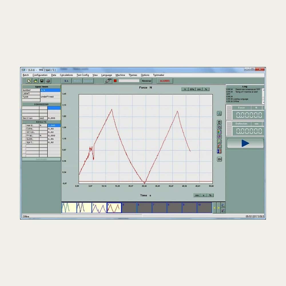 Equipment designed to analyze the properties related to the texture of foods in general, with analysis software TPA (Texture Profile Analysis).