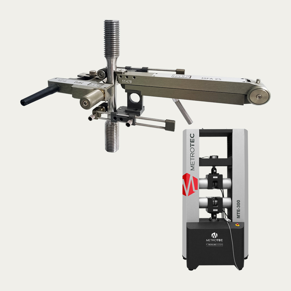 The MFQ-H and MFQ-R manual transversal extensometers are designed for checking thin plates (MFQ-H: R-value determination (vertical anisotropy) or round samples, respectively (MFQ-R: Poisson value determination).