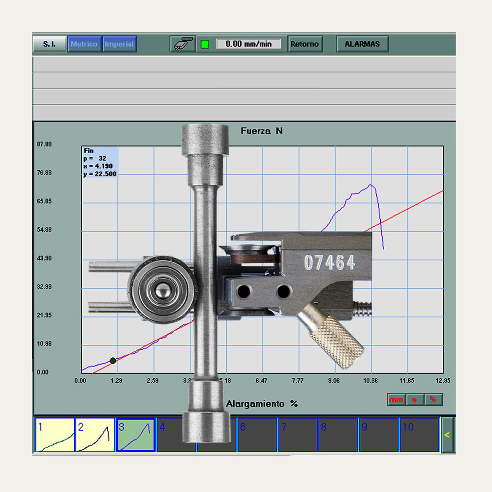 The MINI MFA 2 extensometer is suitable for almost all sample types up to Ø 25mm (or 25mm x 25mm) and gauge length (Lo) of 10mm.