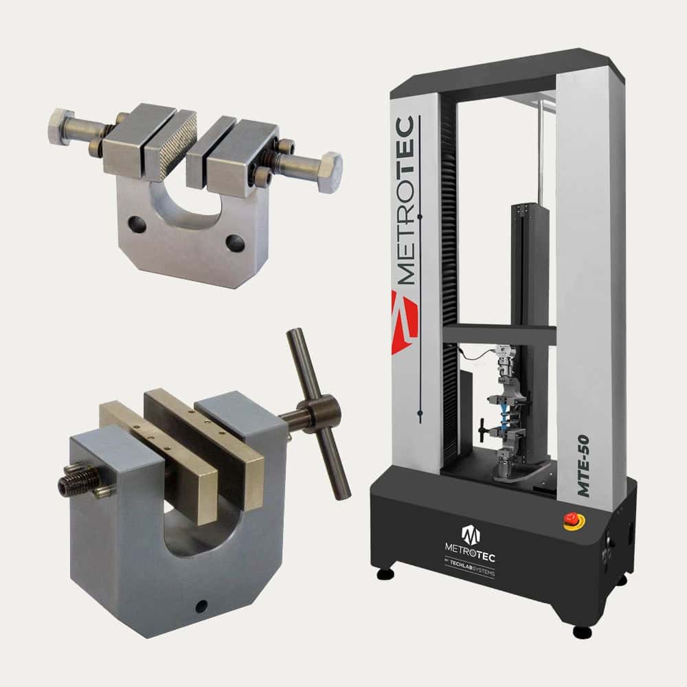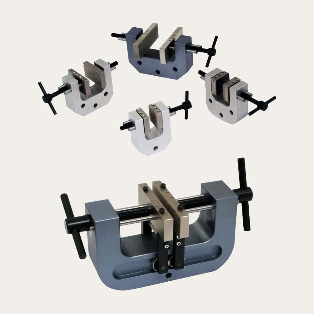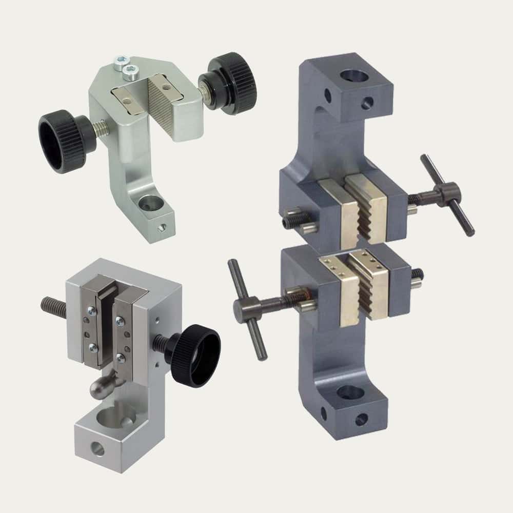 Manual tightening grips, easy to use and applicable to perform tensile tests on light sheet material samples with tensile strengths between 0.1 and 50 kN.