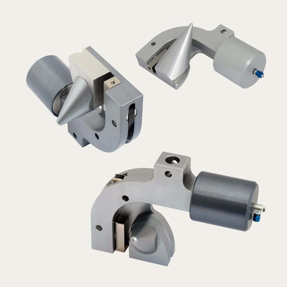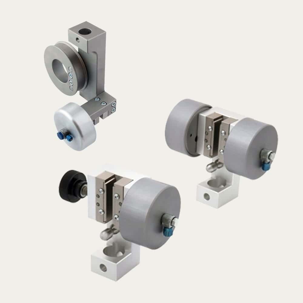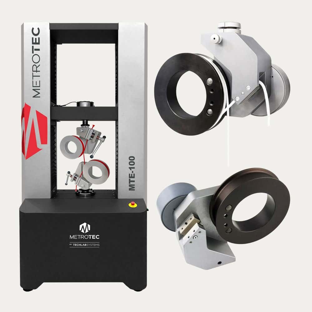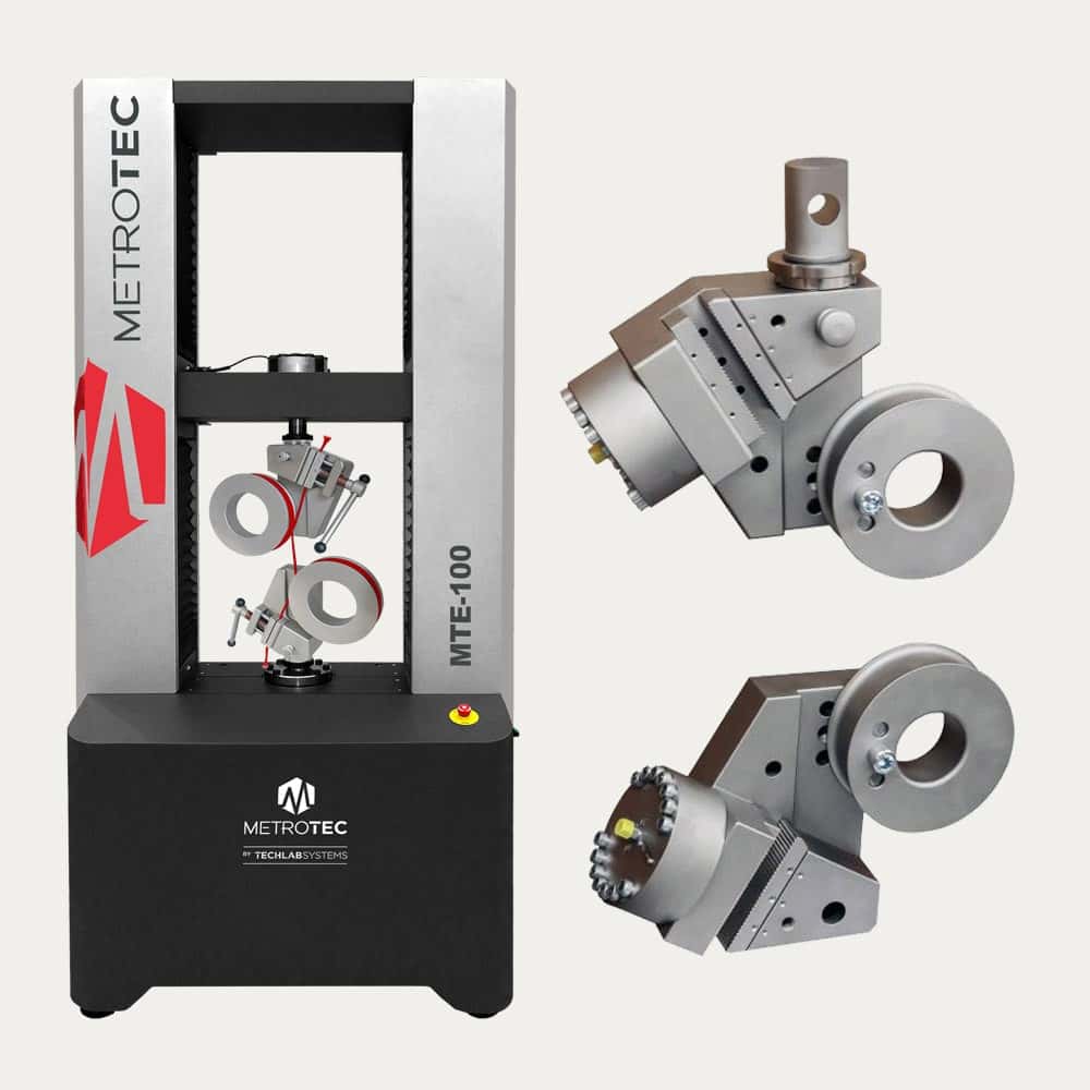 Pneumatic bollard grips for tensile tests on materials that are difficult to tie (ropes, narrow bands, cords, fine threads, strands, filaments, cables and fine wires...).