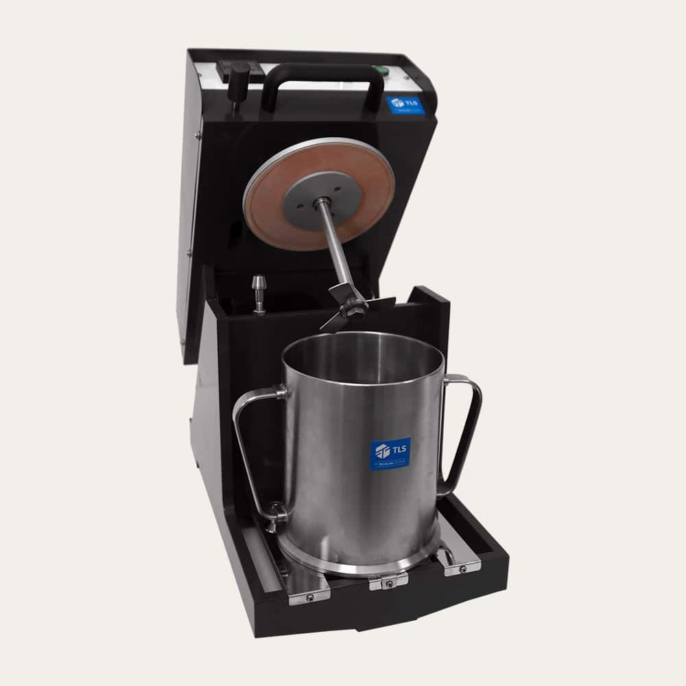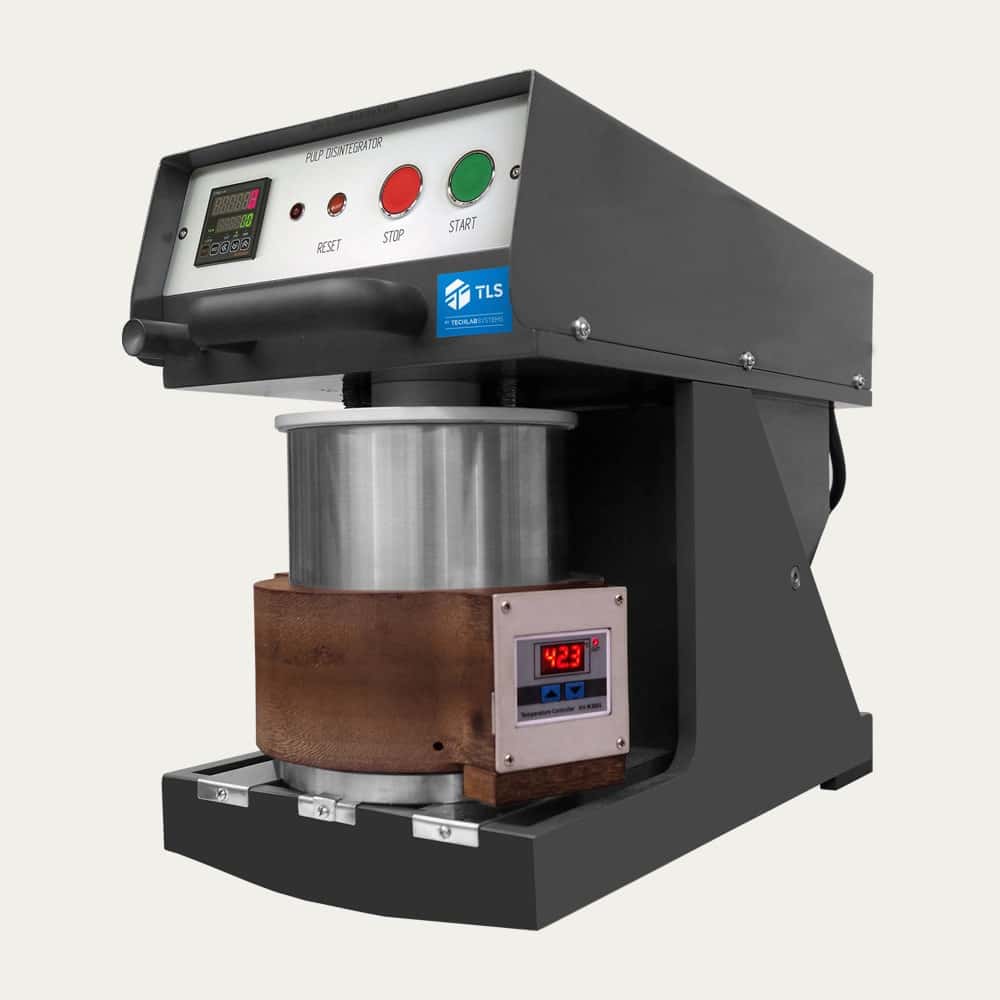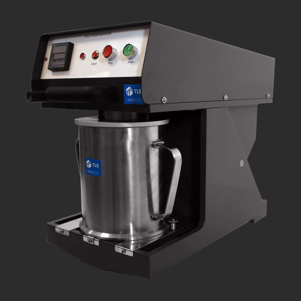 Equipment for the standardized disintegration of cellulosic pulp in water suspension.