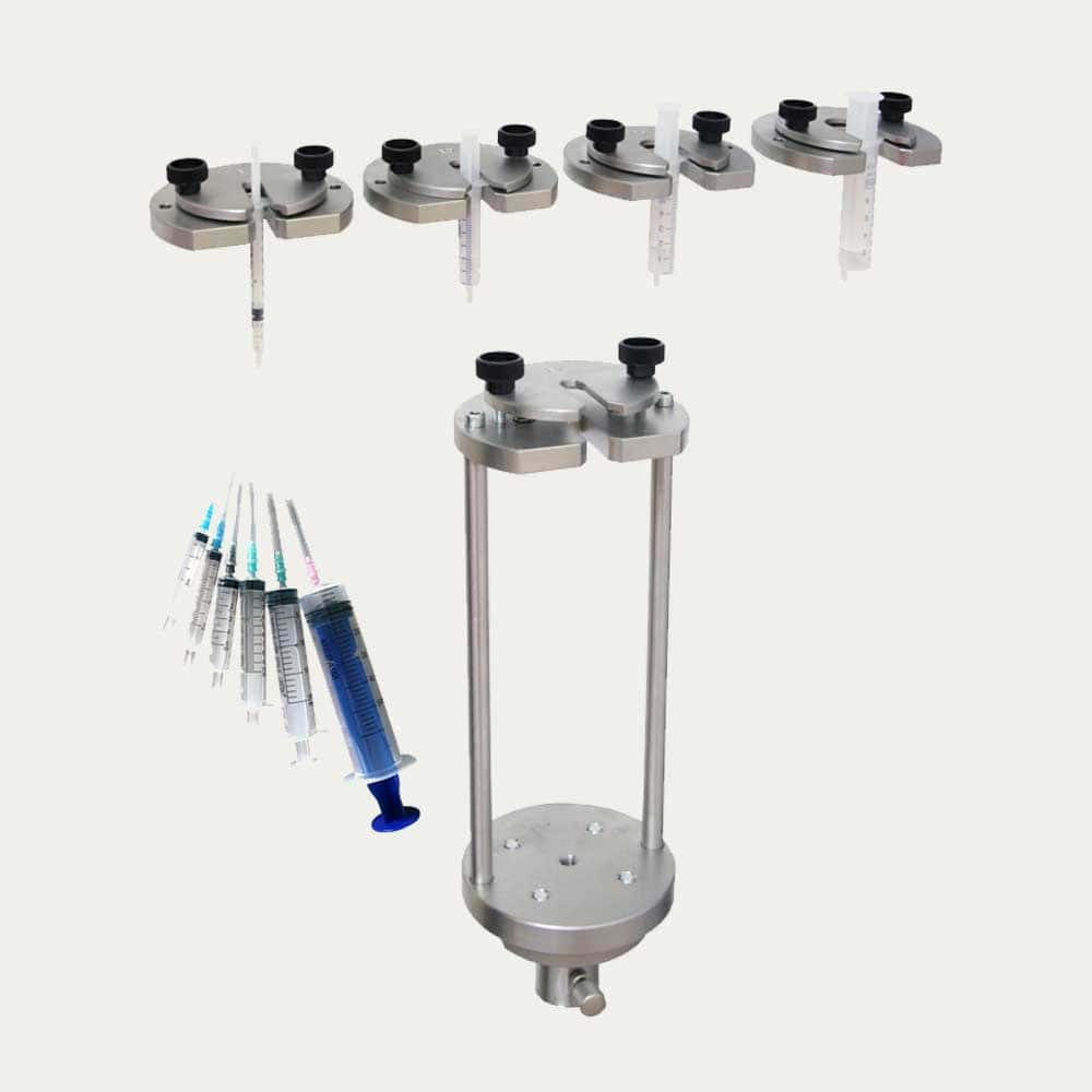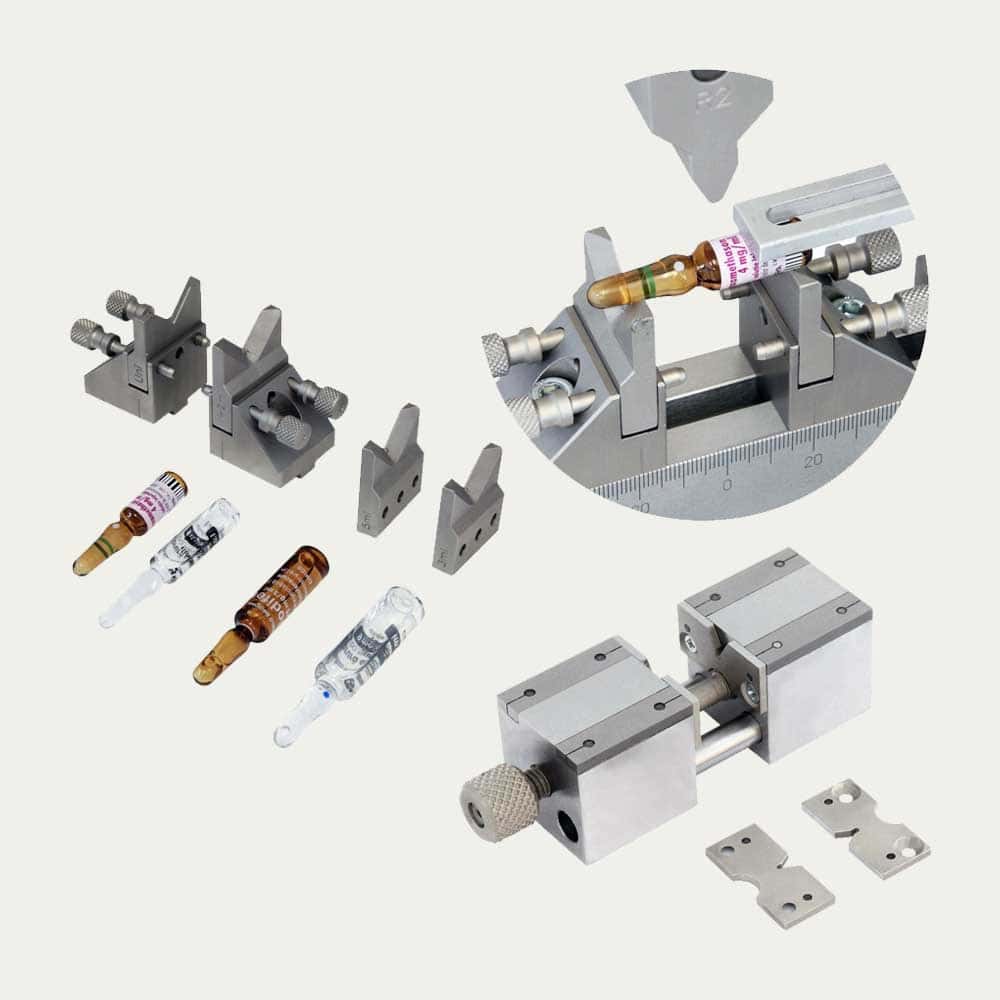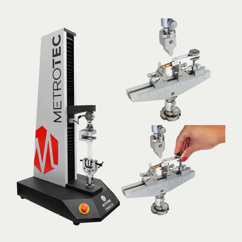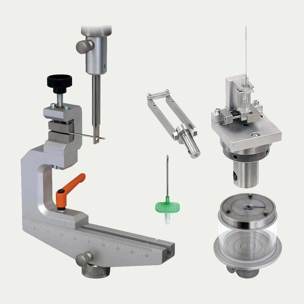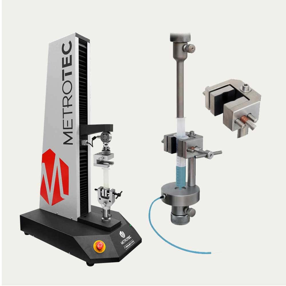 Testing devices for biomedical elements such as syringes, needles, protective clothing, ampoules, dental elements, hip prostheses, dental prostheses and implants, FFP2 protection masks, human tendons...