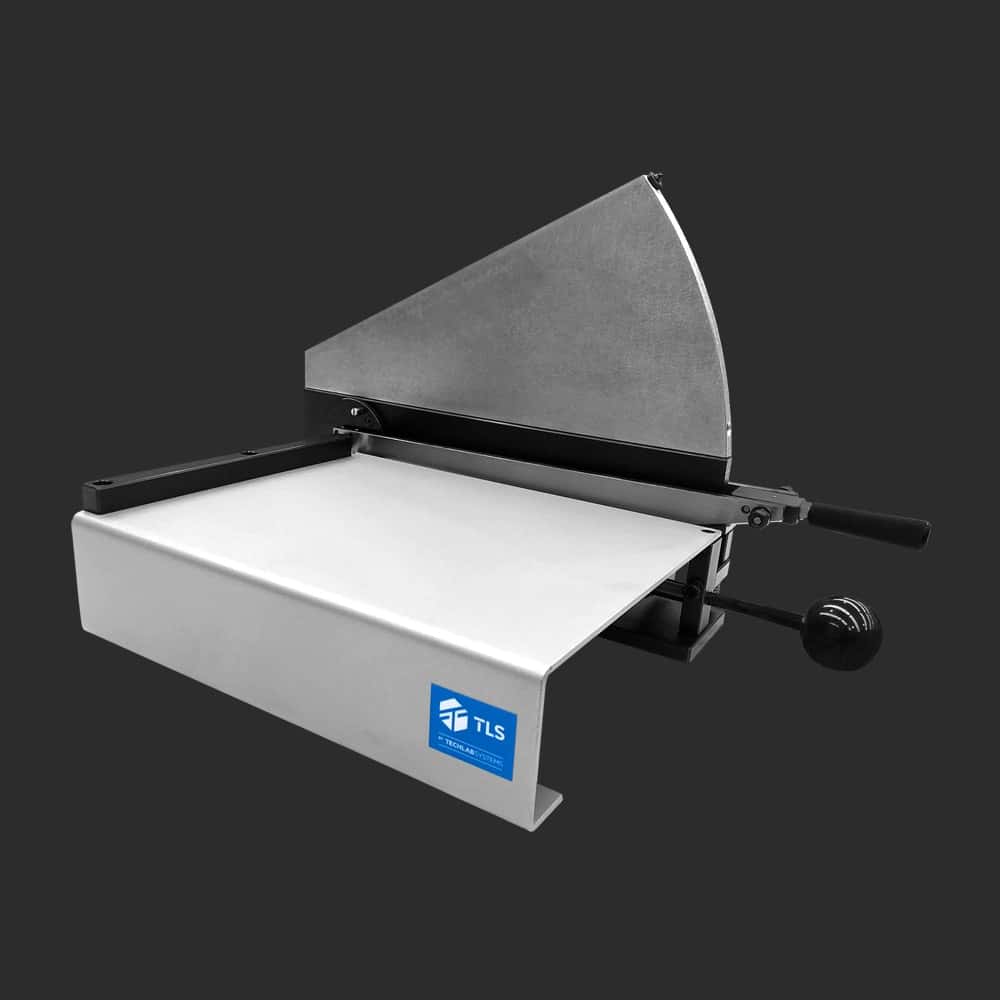 Precision twin blade shear for cutting paper samples, aluminum foils, plastic film and similar materials.