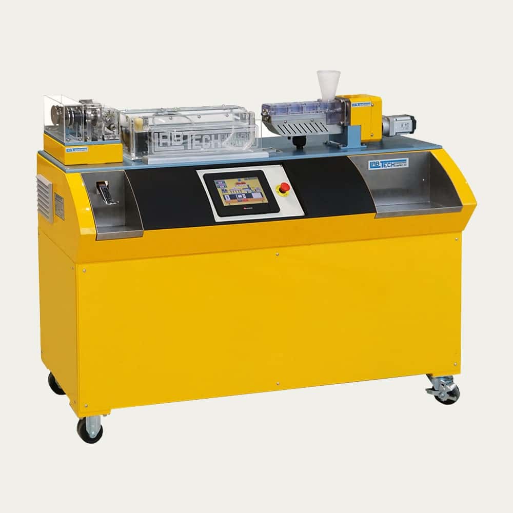 For the study in small productions of films by the extrusion method blown polymeric materials (HDPE, LDPE…).