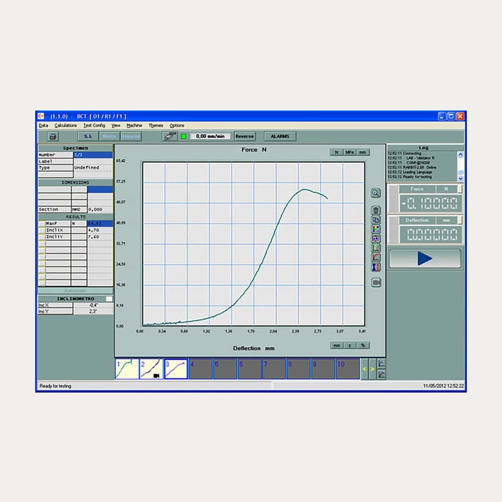 • Testing software with basic statistics to perform BCT (constant speed), Stacking (constant load) and cycling tests.