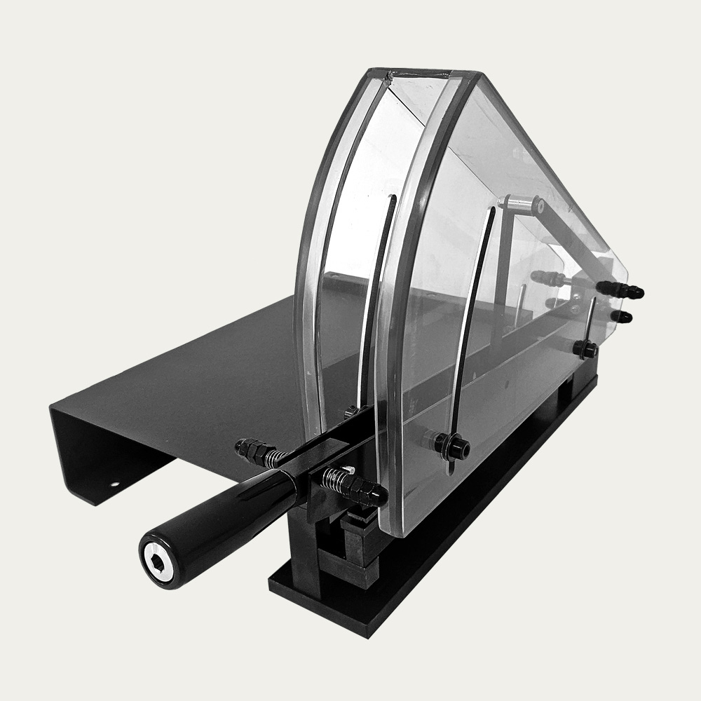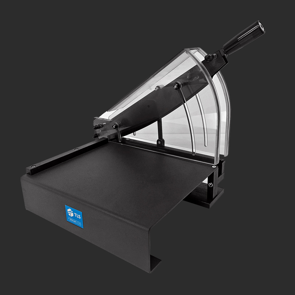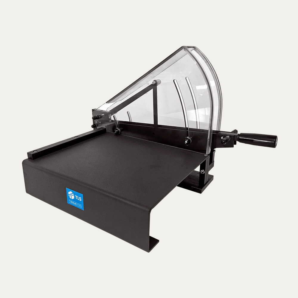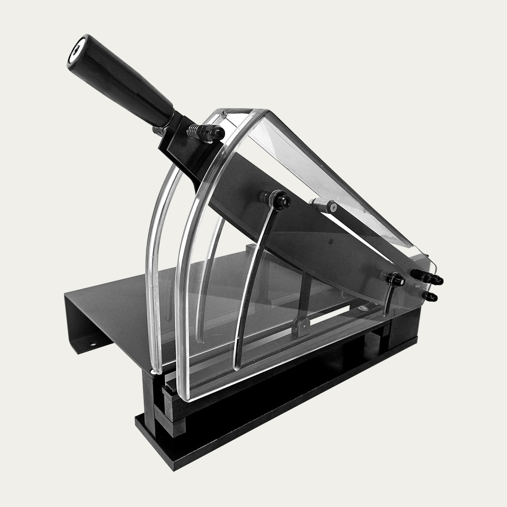 Cizalla de precisión de doble cuchilla para cortar muestras de papel, foils de aluminio, film plástico y similares.