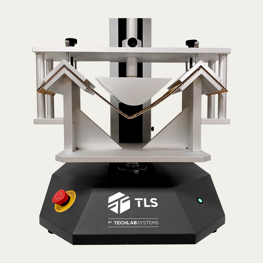 Maquina de Ensayos con marco de ensayos de una columna diseñado para determinar con rapidez y precisión la resistencia de las uniones de los esquineros de cajas de cartón corrugado conforme a la Norma FEFCO 55